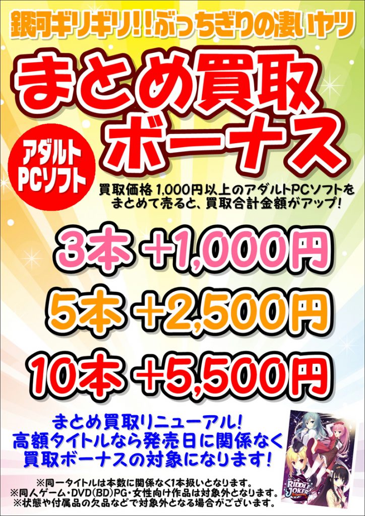 ■アダルトPCソフトまとめ買取ボーナス!